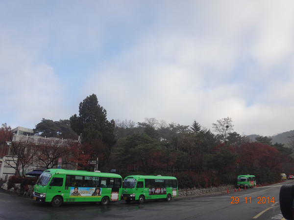 下山的时候,发现 韩国的公交车是有重量限制的,到达限制重量时候就不让上了的。