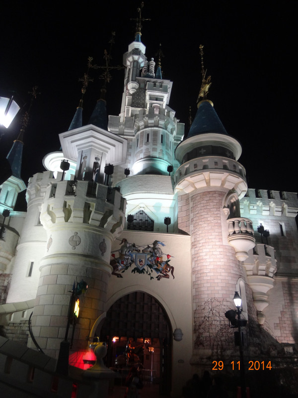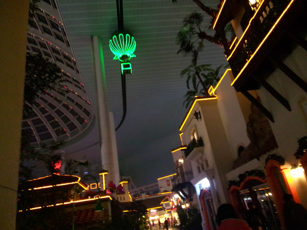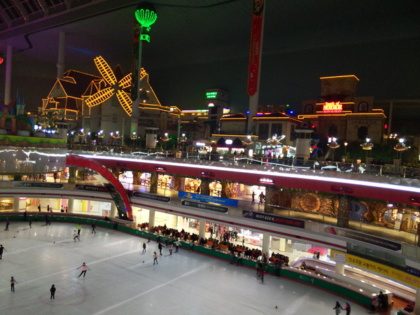 离免税店很近,走过去也就几分钟,进去的时候是晚上,好多室外的刺激项目都停开了。但是有表演,也看到了天国阶梯里的木马还有溜冰场,虽然不是同一个。如果去玩,至少可以玩半天的。但是其实游乐园都一样的。