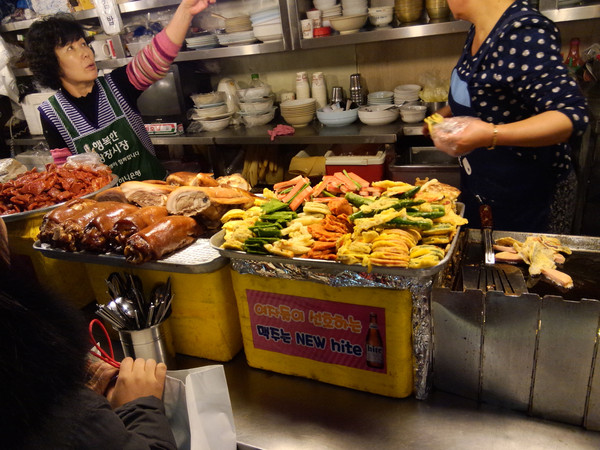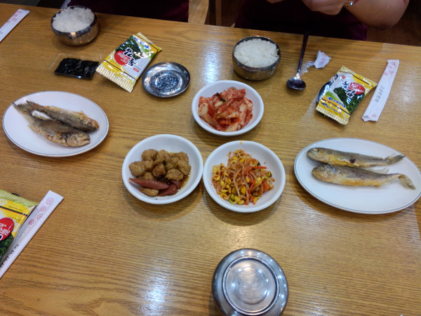 早晨的早餐在酒店用的,中餐的粥、蛋炒饭,西餐的面包、牛奶,韩餐的泡菜都有,还有水果,韩国的水果真心好吃,赞一个~(据说早餐和正餐是一个价格的,值)。记得吃完以后,自己把餐具拿好放到标示处哦~吃多少拿多少,不要浪费,韩国人这点做的还是很好的~