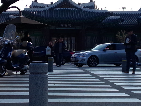 1.青瓦台,外观,周末的早上时候青瓦台附近的红绿灯不亮,按警察指示过马路即可。