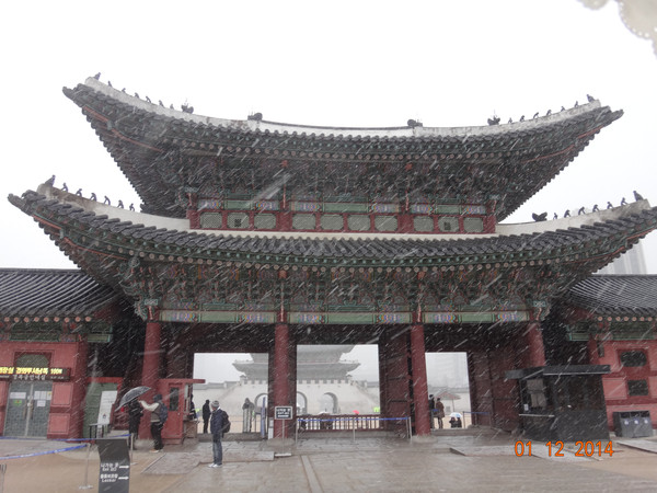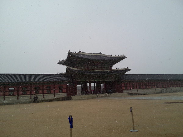 地铁2号线转3号线到景福宫站,下来就是景福宫了,出了门发现是毛毛大雪,门票3000韩元,宫殿不大,也没导游词可以蹭听,纯欣赏,比较乏味。