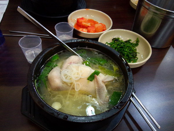 午餐时间到,吃的参鸡汤,很淡,里面确实有很小的人参,同行的小伙伴有2个吃不惯