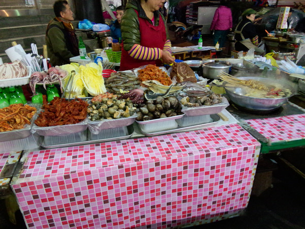 吃完以后逛了南大门市场,真心很没意思,都是大叔大婶的衣服,小商贩,加之天气冷,关门也早,逛了会,天冷入手一条围巾,1万2千韩元,一般般,没有漂亮的围巾手套。