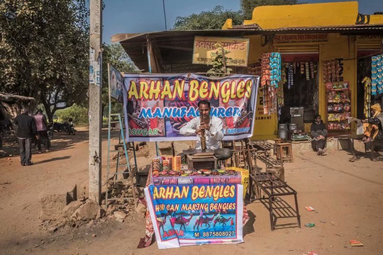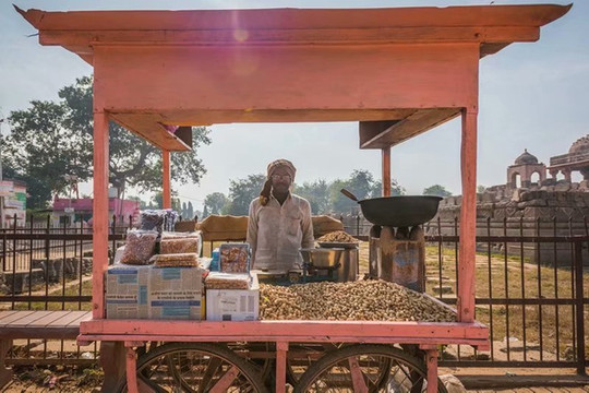 千年前人们的日常生活成了印度古老文明的见证,千年后井边的村民,守着老井支起了十来个摊点。几辆旅游大巴停靠在沙土的路边,街上也热闹起来,不同肤色人的游人给这里带来了人气,也带来了些许福利,历史总是在前进。