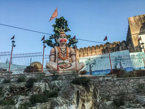 与月亮水井一个铁门之隔的是一座印度教神庙,名字很好听:欢喜女神庙。导游博洋的中文刚好够我们能听懂,很执着地说那是很高兴女神庙,哎,他只知印度古建的精美,却不懂汉语语言的精深。