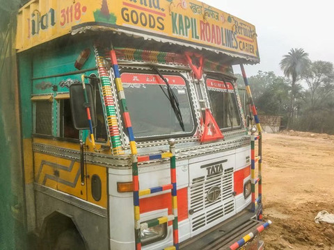 装修成农村重金属风格的大巴,一边在黄土飞扬的公路上奔驰,一边还要熟练地绕过悠闲的神牛,车长成这样,喜感满满的