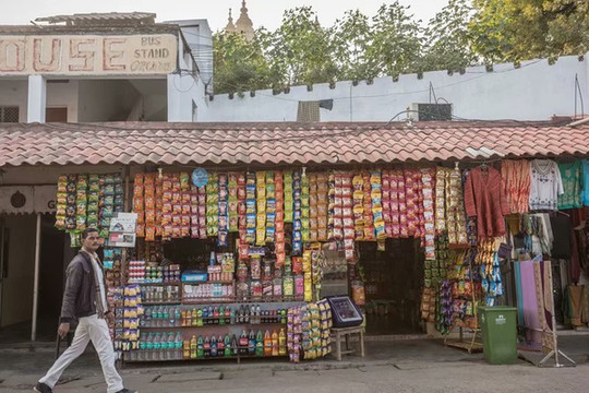 很多店铺喜欢把东西挂着卖,一是为了省地方,二是为了展示产品,为了解决中下层人民捉襟见肘的购买力和强烈的购买欲之间的矛盾,日化厂专门设计了能挂着卖的、小包装的、还要带盖的洗发水和牙膏。为了保护这些百万级的商户、中间商、低收入阶层的利益,印度政府不敢完全开放零售业,更不敢贸然放沃尔玛、家乐福这样大型国际连锁超市进来。