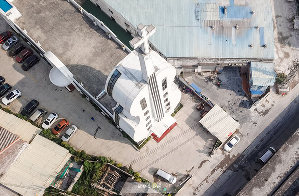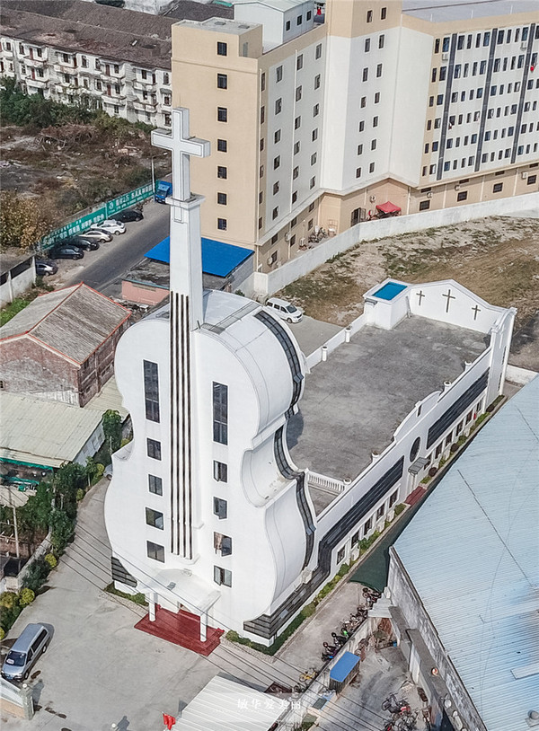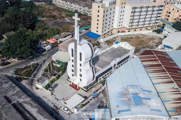 在 广东佛山南海 盐步环镇路,在一片不显眼的工业区中却建有一座 中国 首座基督教小提琴教堂!
