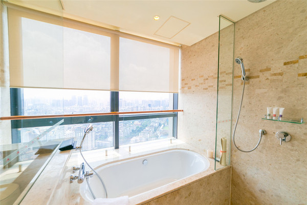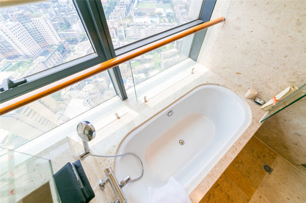更大的惊喜还在后头,那就是超大浴室当中的全景落地窗!
