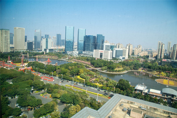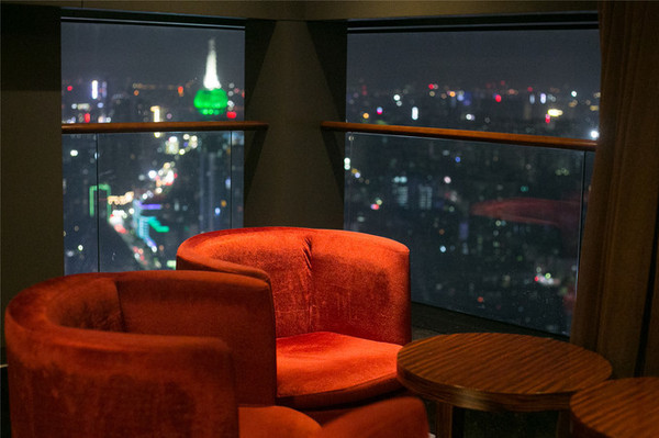 躺坐在贵妃椅上,看着脚下繁华闹市中的人来人往和车水马龙,原来从40层的高空居高临下观赏美景真的别有一番风情!