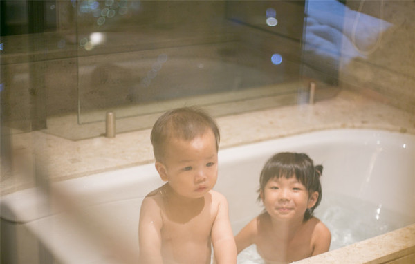 大理 石的瓷砖、洁白的浴缸、360°无遮挡的美景,边泡澡边看 佛山 星星点点的夜景,姐弟俩喜欢到不得了!