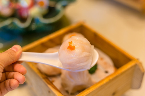 应记黄里透红的蟹籽鲜虾云吞一上桌确实就能勾起人的食欲!