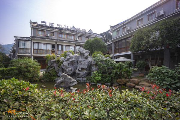 东江湖一号院所倡导的“乐享茶居生活”体现在一楼“茗泉茶舍”的茶香醉人中,进 入大堂的一瞬间已经是满满的茶香扑面而来,呈现在眼前的是小桥流水、鱼儿嬉戏……三楼独有的天空花园中,一茶一书,一日一闲,值得慢慢体验,值得发呆一整天的好地方。