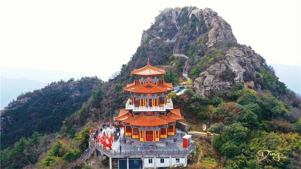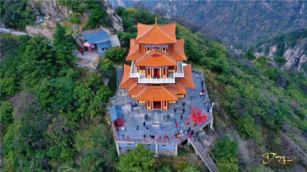 玉皇阁是白云山中海拔最高的一座道观,占地246平方米,两边楹柱刻有“玉帝凌天宇唯尊唯我,生民盼九州至善至德”的对联,为全国作家协会主席王蒙先生登临玉皇顶后所书。