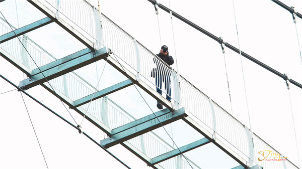 许多人双脚踏上玻璃栈道的那一刻,感觉没有了云中漫步的浪漫情怀,也没有了空中走钢丝的刺激,强烈的恐惧心理让自己亦步亦趋,走走停停,总是担心玻璃结实与否,忐忑不安的心态,喧染着紧张的气氛,空气中弥漫着危险的元素。