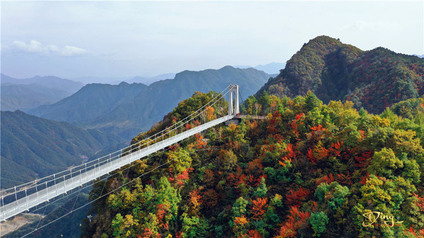 秋天的山坡层林尽染,五彩斑斓,那一抹抹靓丽的红色,便是吸人眼球的红叶。置身在峡谷美景中,观赏着漫山红叶,心情像过年一样快乐。