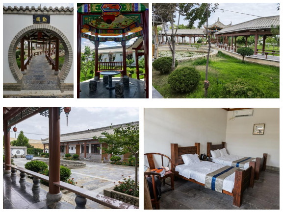 一个小时左右,我们就来到了沙坡头景区附近的中卫壹号院酒店。这是我们本次旅行的第三站。选择这家酒店的原因一个是离景区大门很近,再就是这是一家中式庭院,有着浓郁的名族风情,显得素雅古朴。酒店周围都是农家乐,少了市区的吵闹,反而多了点鸡鸣狗吠,更具烟火气。酒店分前院和后院,从前院到后院需要经过一个“勤园”,名字是不是有其他寓意无法考究,但景色宜人,颇有苏州园林的味道。