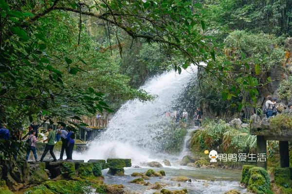石上森林也几乎汇聚了小七孔最精华的景点,68级跌水瀑布、断崖飞瀑、拉雅瀑布都在这里,游客可以一路步行到小七孔古桥。