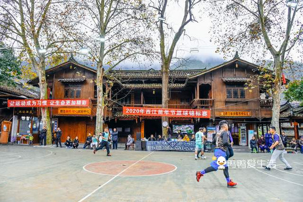 芦笙场,可惜没赶上表演,倒是在它边上的球场围观了一场苗年篮球赛。