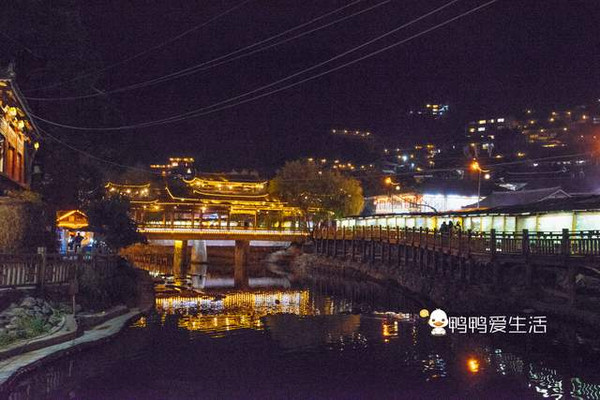 迷人夜色,苗寨的点点灯光看完表演后,沿河边散步到1号风雨桥搭电瓶车前往观景台,从高处俯瞰苗寨风光。天色已经全黑,苗寨亮起了万家灯火,没有夸张的霓虹效果,就是普普通通的亮灯,却让人感受到其中的安宁美好以及淳朴之感。(如果想拍夜景效果更好,建议携带脚架,用长曝光)
