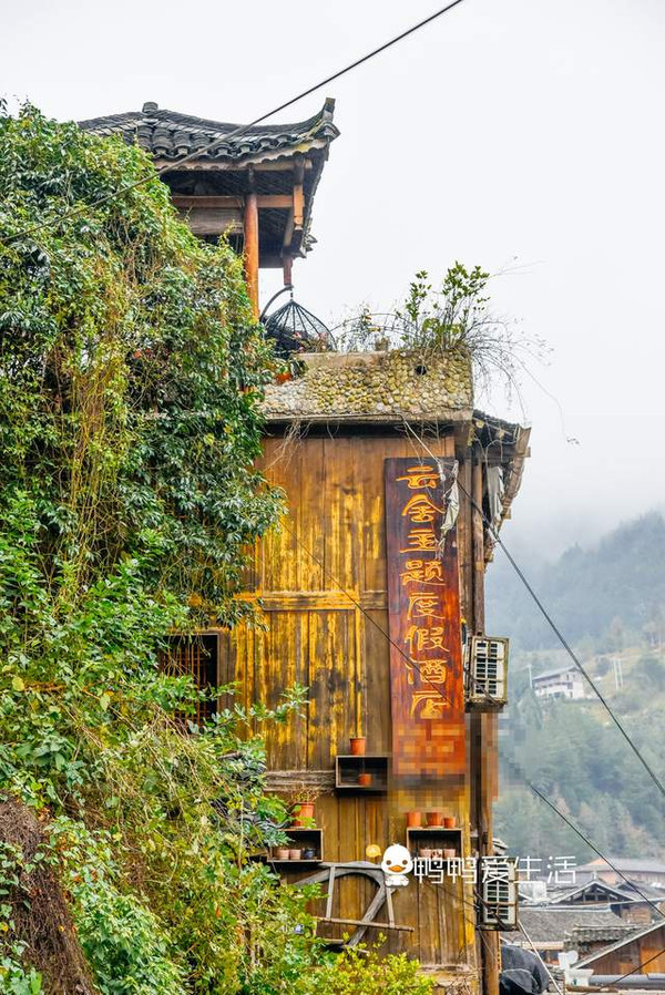 第二天早晨洗漱完毕,出门走走,突然降温,从前一天的25°一下降到了4°,还飘了点雨,苗寨仿佛镀上了一层氲氤之色。