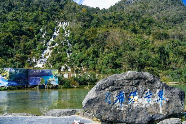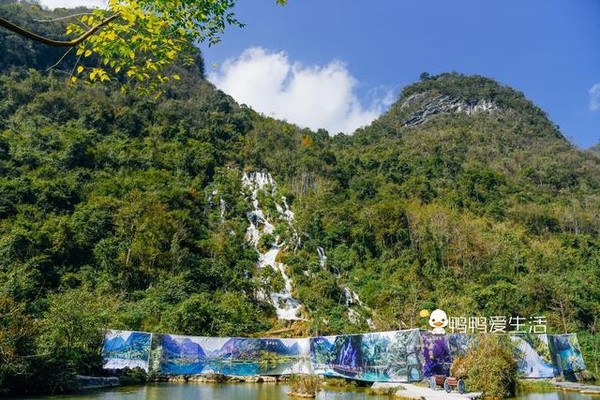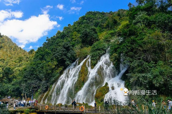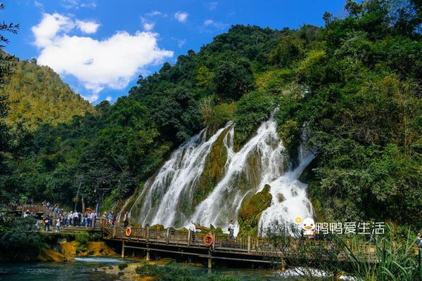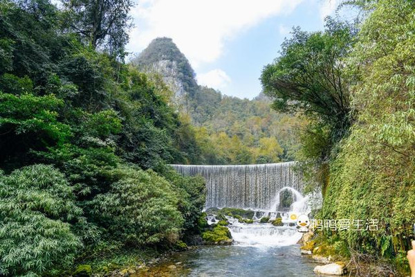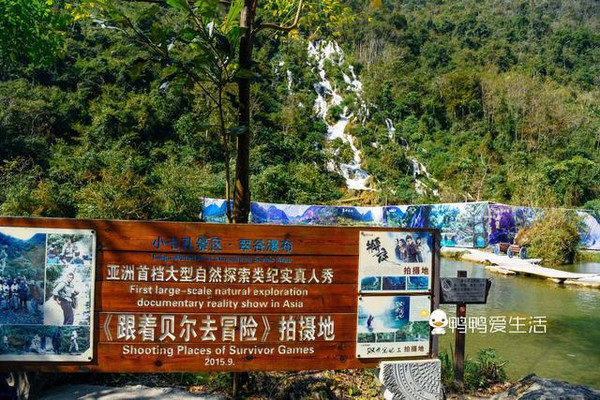 亚洲首档自然探索纪实真人秀《跟着贝尔去冒险》就是在翠谷瀑布取景的,这也让翠谷瀑布和小七孔的名声传到了海外。现在翠谷瀑布下的木栈道正在维护,只能从远处观看它的美景。这个时节虽然水量还不是最丰沛的时候,但60多米的垂直落差,看起来还是很有气势,这也是小七孔景区内落差最大的一个瀑布。