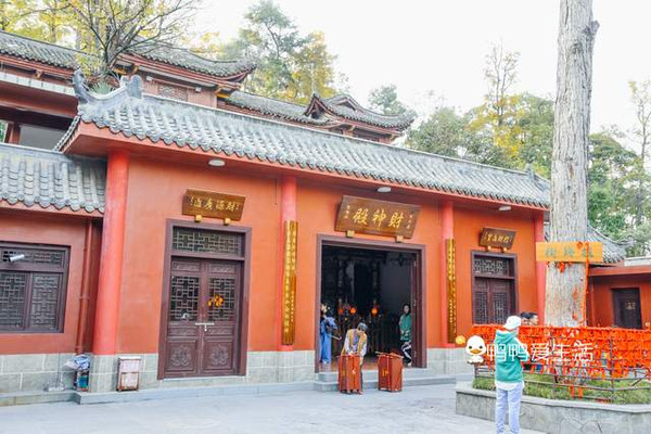出口处有一个财神殿,高大的“摇钱树”上挂满了许愿的红布条。