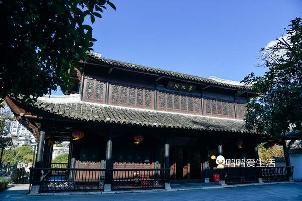 翠微阁始建年代不详,清道光年间已具盛名,为面阔三间的二层重檐歇山卷棚顶穿斗式木结构建筑。阁楼依岸凌水,灵秀飘逸,有“半面山楼、半面江楼”之誉,历来为文人雅集吟咏之所。