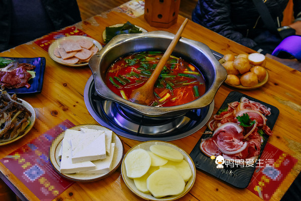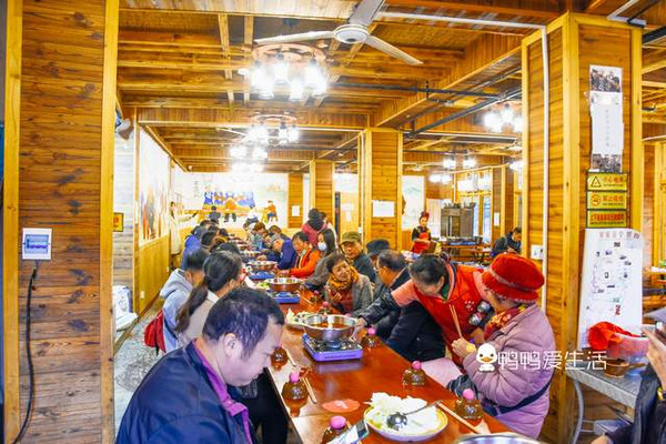 入门看到一个桶装物,原来是烧炭的“暖气”,南方人表示见识浅。每个桌上都有火锅位,装修比较简单,有苗族酸汤介绍!
