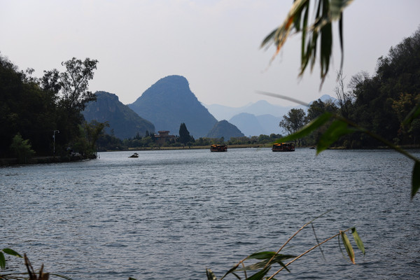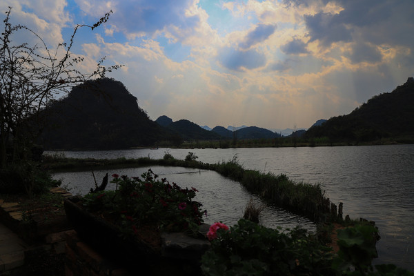 到普者黑应该是中午十二点左右,一堵车到达时间成了下午四点半了。我们在仙人洞停车场驻车的。停车场很大而且免费。也没有门票。可能是淡季的原因,普者黑在六七月是最美的,荷花盛开青山环绕。天色将晚先进去大概看看,明天在仔细游玩。