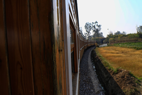 第十五天3月12日 早上挺早就起来了,洗漱完没吃早饭就走了,我们今天要去坐建水米轨小火车,上下午各一班,早上九点开车怕晚了。停车的位置好车位少,就不打算开车了,坐公交车去一共四站地。不到八点我们就到了,售票处一上班工作人员就告知九点的小火车没有座票了,站票也为数不多了,现在大多是网上订票了。天气热站票也挺舒服点,因为在车厢外面的围栏处,看风景更方便些。火车票每人一百元,今天还在三八节优惠日中,女士半价。