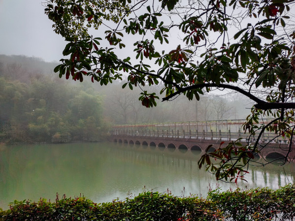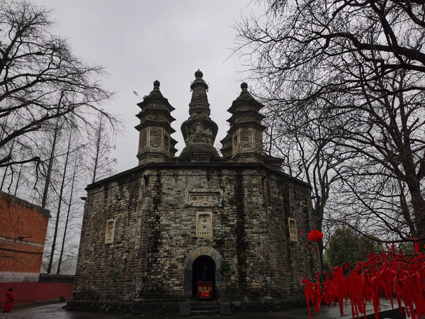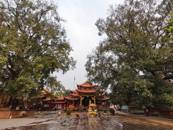 第三天2月28日 襄阳这几天有雨,不大不小,典型南方的雨,不打伞也行但是湿衣服。我们去了古隆中景区游玩,中学语文课本中刘备三顾茅庐的地方。因为疫情只开了一个景点“诸葛故居”,其他的都关闭着。门票87元每人(包含园内游览车),通过和观光车司机师傅聊天,好像广德寺最近开放了,逛完故居让司机师傅把我们送到了广德寺,算是八个景点看了两个。疫情期间出游可能有些景点不开,但最大的好处是游人稀少,车上就还有另外一中年妇女,整个园区在细雨濛濛中特别幽静,仿佛穿越一般。