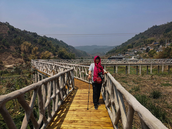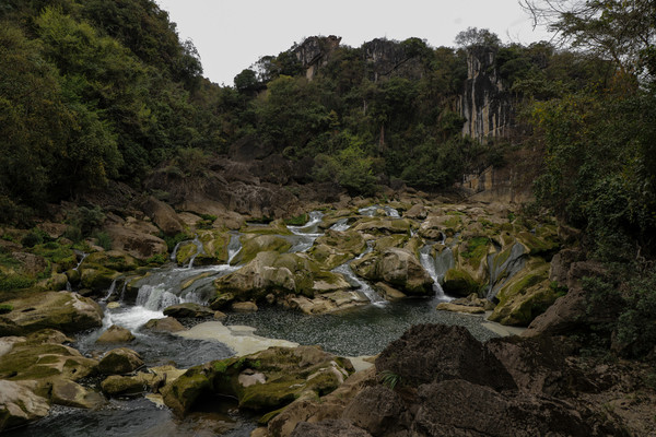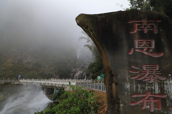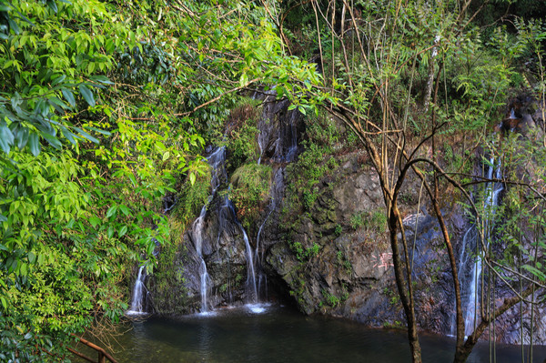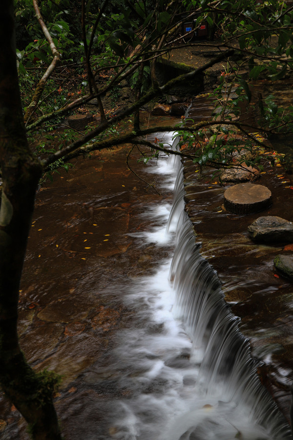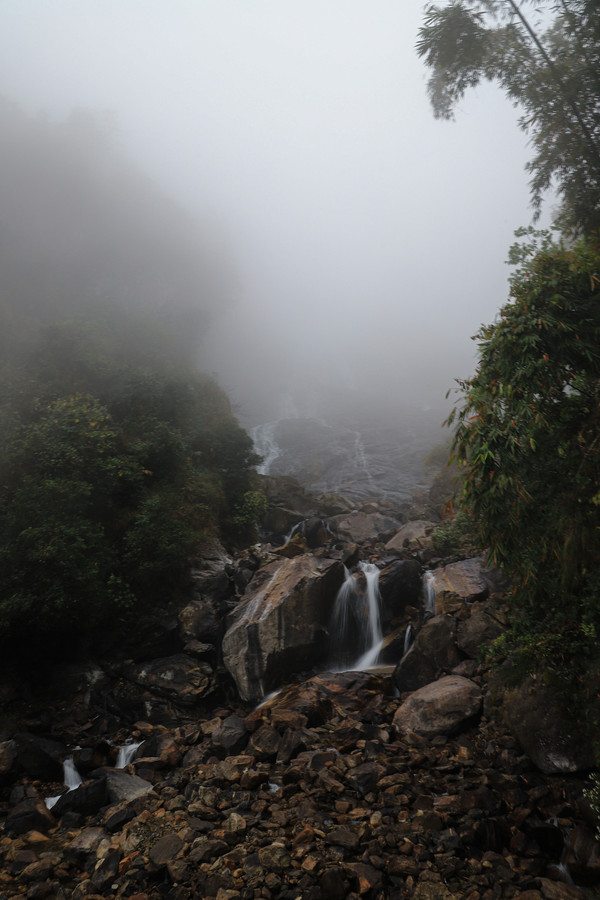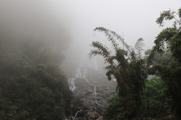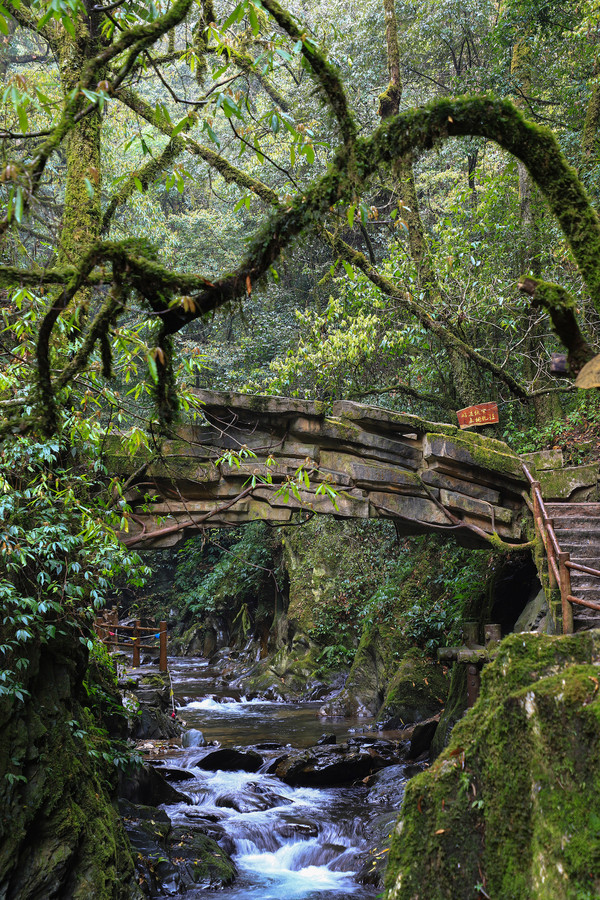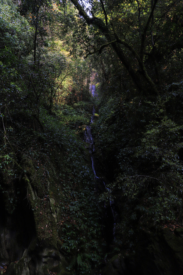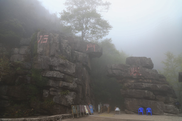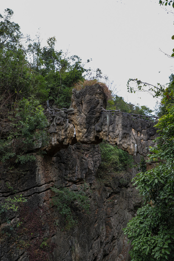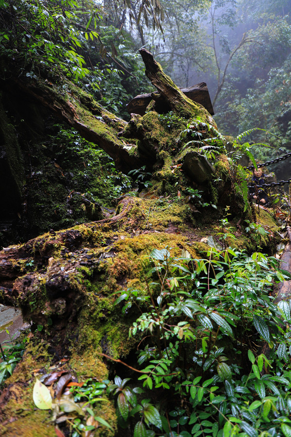 第26天3月23日 早上起来还是大雾和小雨,森林公园我们就不想进去了,给工作人员打声招呼,慢慢的开车离开了哀牢山顶,说实话在雨雾深夜里,住在森林边上,对人的胆量是极大的考验。我在山顶都没有意识到要照张相,手机都没有。可想我的惊恐。开车路过茶马古道,这种天气也无法进去,我们把车开到了石门峡景区停车场,好在这三个景点都属于哀牢山风景区,相距都只有三四公里。雨停了,我们就进石门峡看看。峡谷水流青苔古树,还是挺好看的,跟太行八泉峡差不多。区别在于石门峡中不论树木栏杆路边都铺满绿色苔癣,路比较窄又湿滑,一共2.6公里,我们走到600米处遇到工作人员,说前面的景色和我们走过来的差不多,我俩果断转身走回去了。
