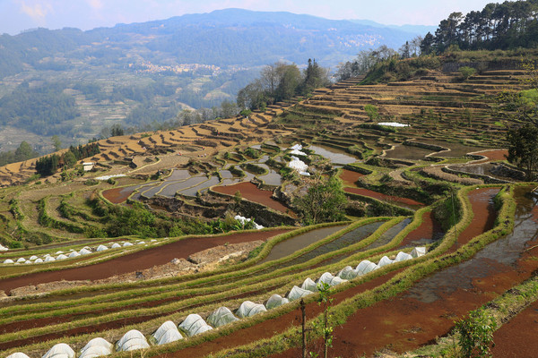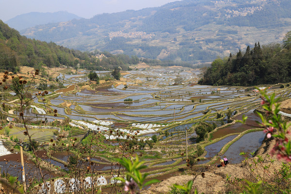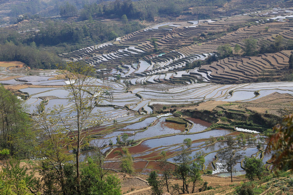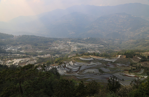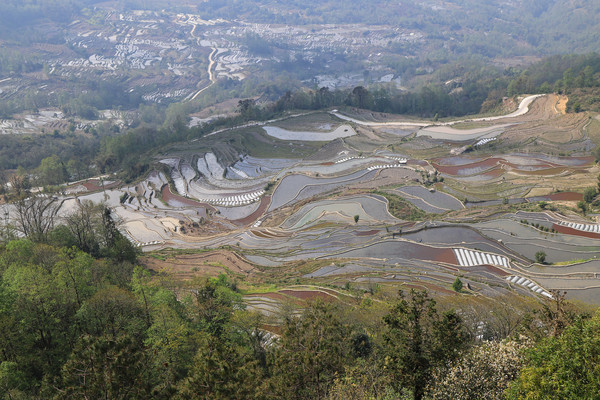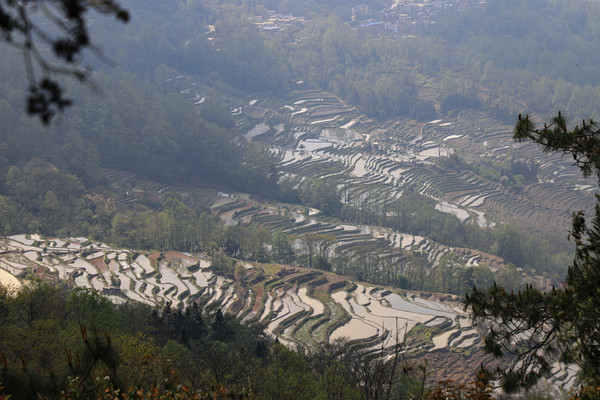 中午我们到了元阳,不知道是不是来的时间稍微晚点,有一部分梯田已经插上了秧苗。按照车友给讲的路线跑了快一个多小时了,也没有看到带水的梯田,老头仔细查看了地图,原来导航导错路线了。应该是元阳老县城到绿春县的省道,我们跑上了元阳到绿春的二级国道。重新返回,终于看到大片传说中的梯田。现在梯田景区,私家车不让进了,要坐景区交通车,四个观景台不在一个方向,觉得不方便。我们就没进去,外面的梯田一样看。