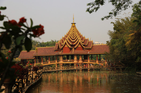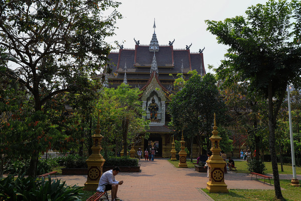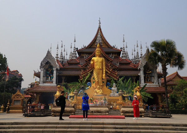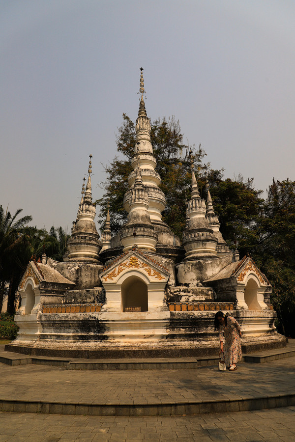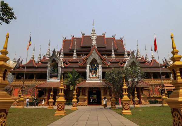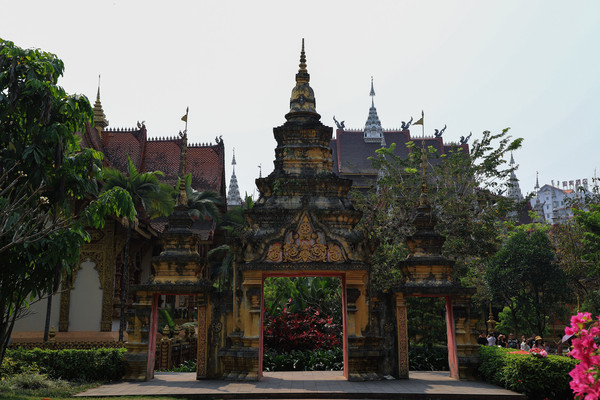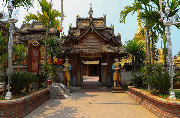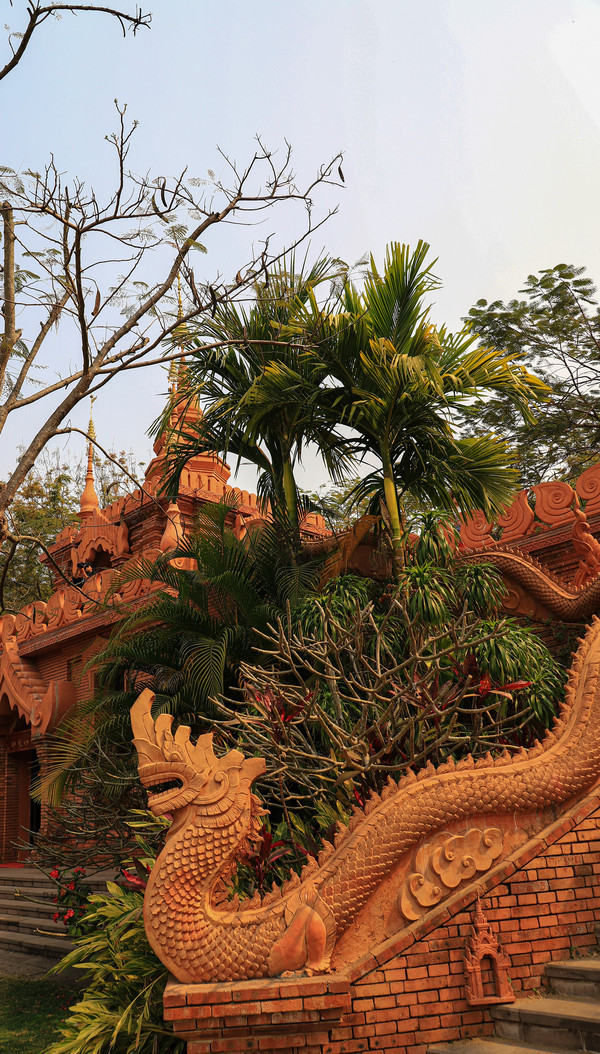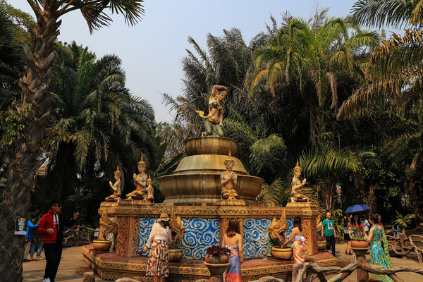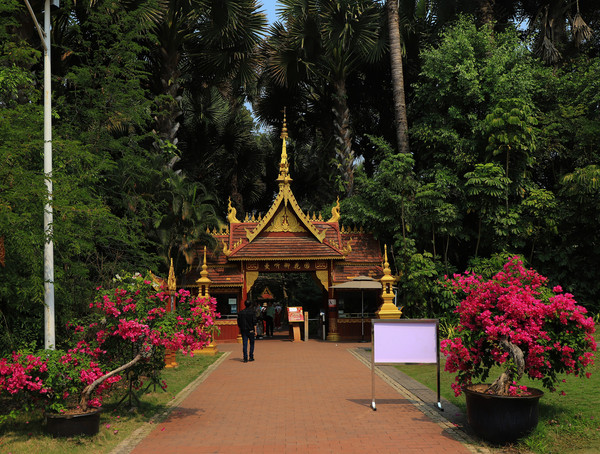 第十八天3月15日我家那位今天不想动,自己骑共享电动车到了曼听公园。公园面积不是很大,建筑和花木都很美。少女们身着傣族服装,大妈们长裙和纱巾挥舞,占领着每幢建筑的前后左右。曼听公园的侧门连着总佛寺,没出国门就像到了缅甸和泰国。