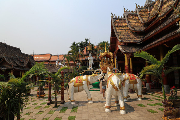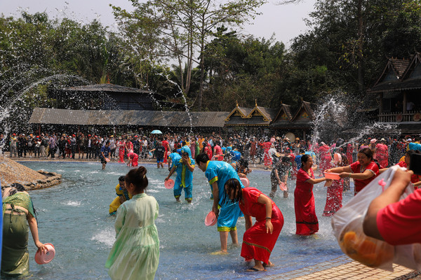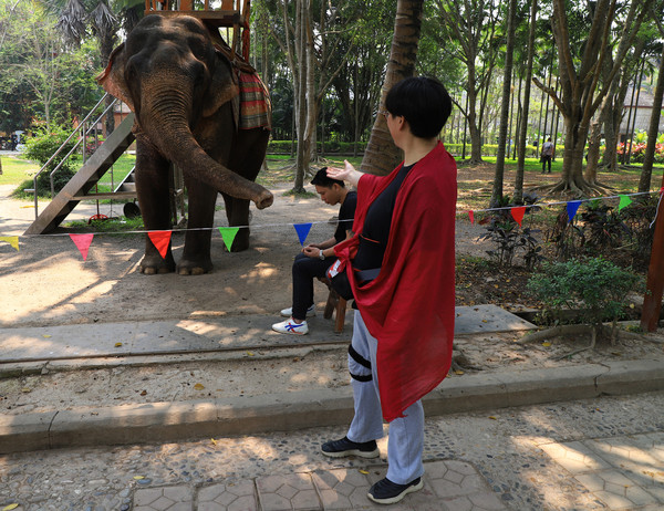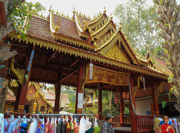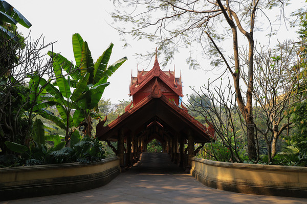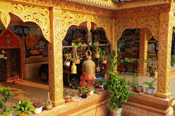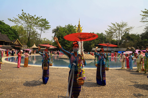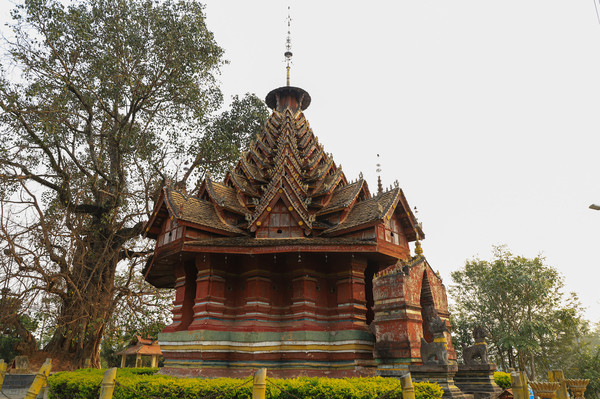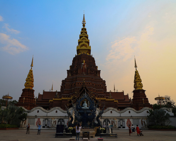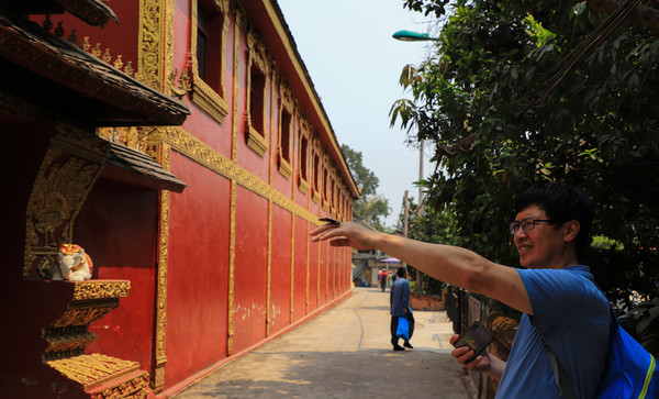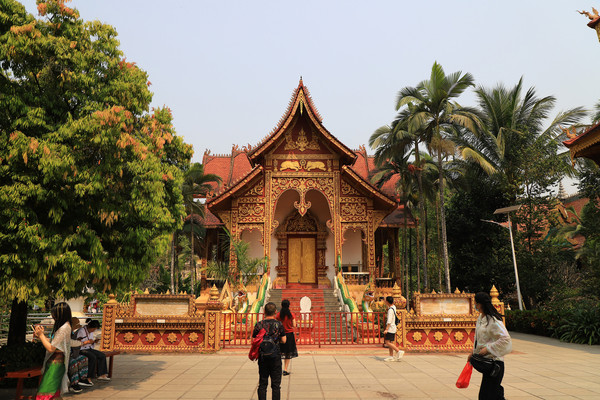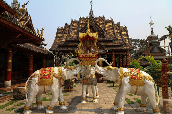 第十八天3月15日我家那位今天不想动,自己骑共享电动车到了曼听公园。公园面积不是很大,建筑和花木都很美。少女们身着傣族服装,大妈们长裙和纱巾挥舞,占领着每幢建筑的前后左右。曼听公园的侧门连着总佛寺,没出国门就像到了缅甸和泰国。