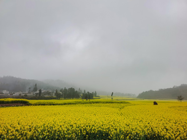 第十一天3月8日早上依然下着小雨,水汽很大,站在宾馆的窗前,觉得今天要留在酒店里休息了。回床上睡个回笼觉,九点多起来看看天色,觉得要放晴,赶紧退房向着油菜花田出发。第一站去的蜡庄村,是一小众看油菜花的地方,没什么人去,碰到一当地人很是热情。