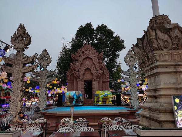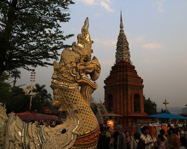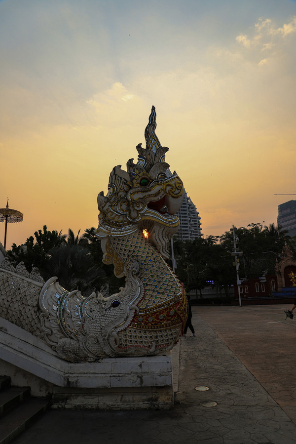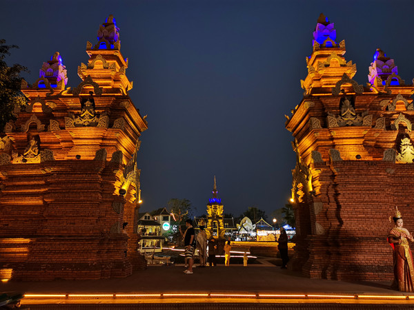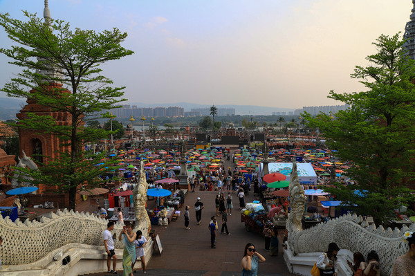 中午温度就有点高了,回酒店休息。下午4点多钟,我俩骑车去告庄西双景,在市区开车还真不如骑车自在。本来想去网红咖啡店打卡,结果排队的人太多了,只好放弃。直接去了大金像寺,然后逛了著名的星光夜市,看着是东南亚的景,听的是东北的音。夜市的东西和各地夜市差不多,老板大多是东北人。逛完星光夜市,我们又骑车去了当地人逛的滨江夜市,沿澜沧江边走了走。