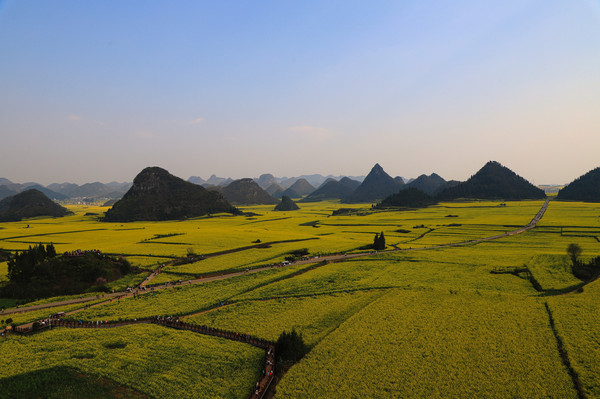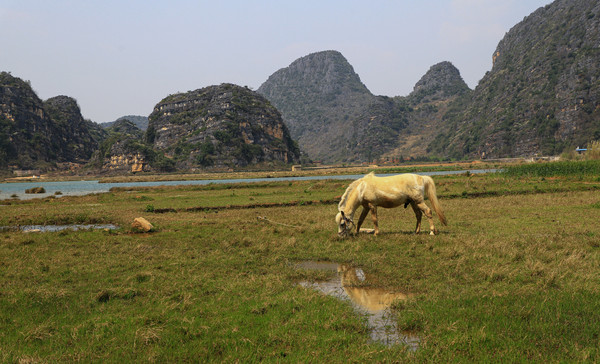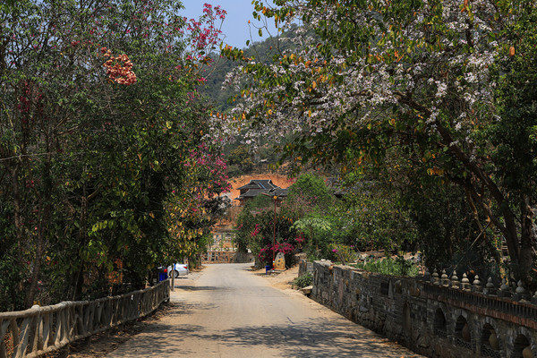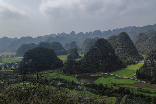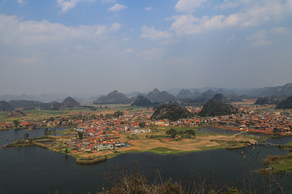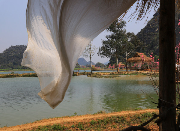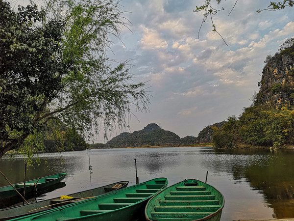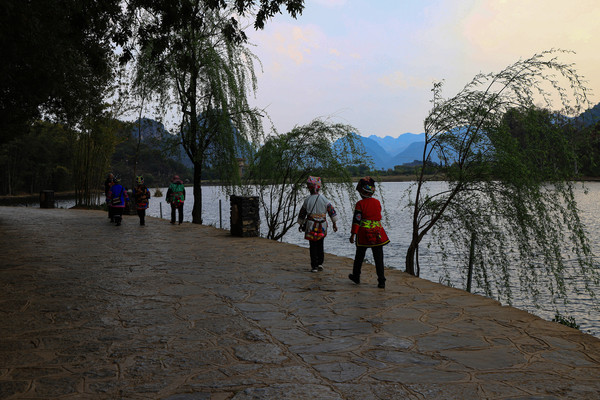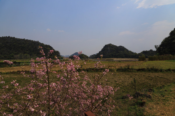 第十三天3月10日 我们停车的地方是仙人洞村。村里全是民宿、饭店和小商店,有点像丽江古城,只是小很多。仙人洞没开放,景区不要票,交通车和船票每人200元。昨天 下午大概逛了仙人洞村,今天的行程是三生三世十里桃花的拍摄地和青龙山看日落。就想着闲逛一下,等下午租电瓶车去青龙山等景点。它们都在普者黑村附近,结果逛着逛着,好像是走的去普者黑村的路,查了导航还真是的,就干脆走着去吧,大概3.8公里。好在相机是带着的,没带着三脚架,拍日落会受点影响。也没带着登山仗和护腰(我腰椎做过手术)。一路走一路拍,也没觉得累,比起万峰林那八公里近多了。