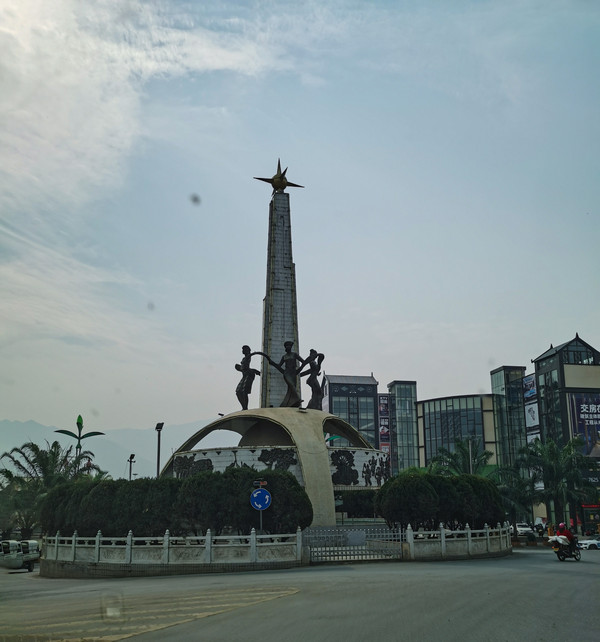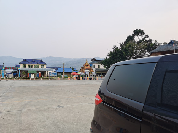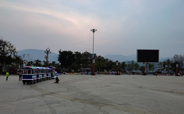 泼水广场,看着别的游客泼水嬉戏心情也超好的。游完傣族园是下午三点多,觉得时间还来得及,准备去勐景来住下。勐景来是中缅边境上的寨子,这样明天一早我们就能进寨子玩了。里面有界碑,再往前一点就到了打洛国门。不知道是疫情防控还是别的原因,打洛国门景区关闭了。去勐景来看看界碑也好,都跑到这里了。结果过了勐海县第一道边防检查点,出勐海二十几公里处就有第二道边防检查点,警官同志说,最好返回勐海县,就是放我们过去,下一道检查点也会劝返我们。如果没有当地导游带着,勐景来是不允许游客自己去的。我们必须回勐海找个当地的导游才行。当时天色已晚六七点钟了,夜幕降临。检查点就在勐海县游客服务中心的门口。警官让我们在广场上住一晚,明天早上让执勤民警给我们打开闸口回勐海。导游我们没办法找,车上有床只有两个座位,只能放弃去勐景来了。