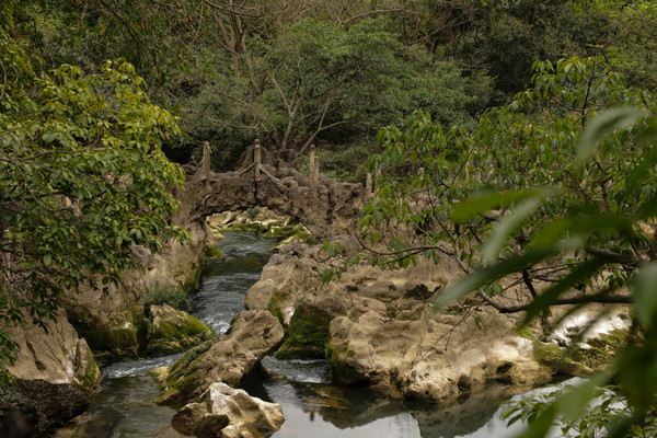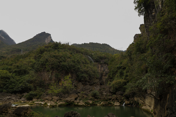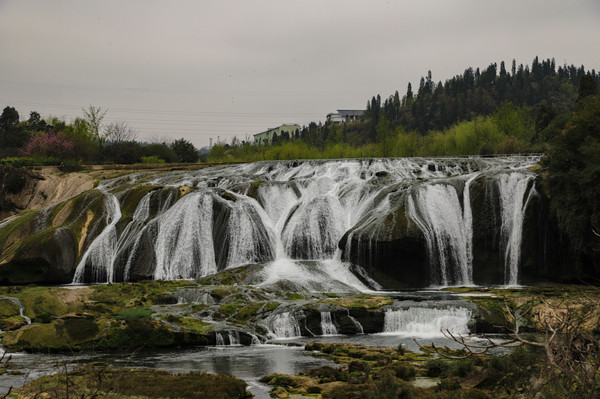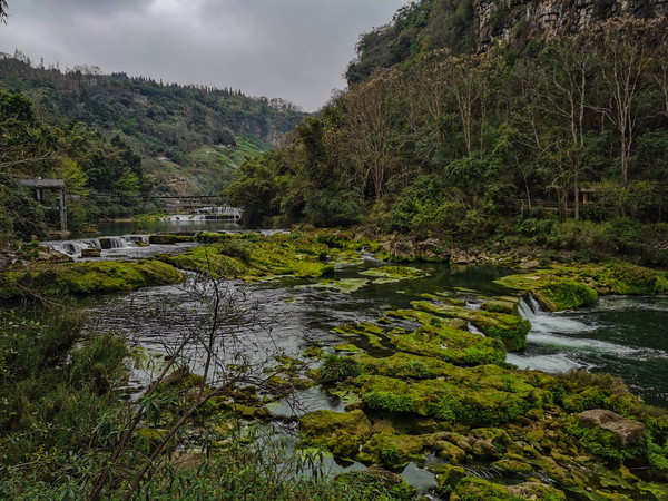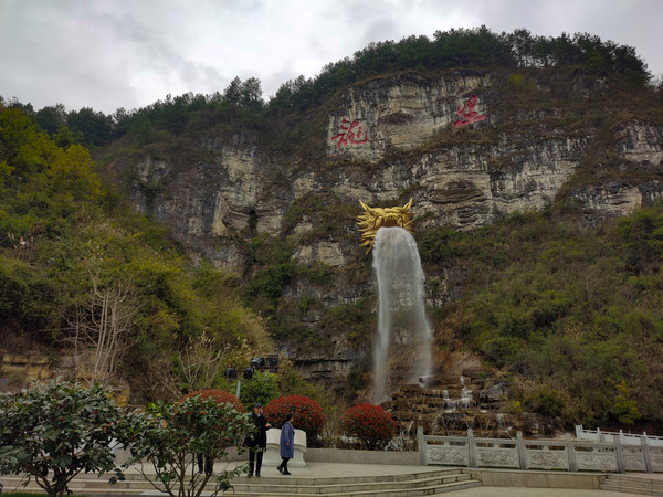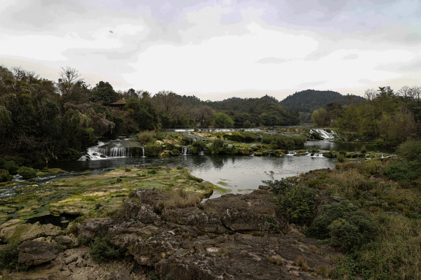 第七天3月4日 黄果树瀑布景区分三个景点,天星桥、陡坡塘、大瀑布,成年人门票加园内游览车220元,两天有效。天星桥景区最远也最大,里面的山石瀑布都很有特色,在著名的银链坠瀑布前,为了拍照我爬到一块大石头上,不小心滑倒摔了下来,吓了我家老头和周围的游客一跳,有热心的小伙子想上前来搀扶,因我腰部做过手术,不敢让别人拉拽,谢过热心人,在地上躺了一会,自己才慢慢爬了起来,甚是狼狈。好在摔下来的时候,把相机护的很好,仰面倒下的,后面背的双肩包替我缓冲了一下,就左臂受了点伤。在天星桥只有水上石林因维修没看到。用了三个多小时游览完的。