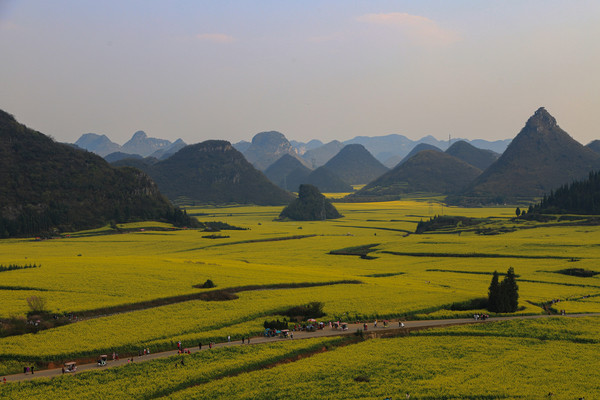 第十天3月7日从昨晚九点二十开始下雨,真是感觉春天来了,电闪雷鸣的,雨下的很大,打在车顶噼噼啪啪,都怕变成冰雹。一直下到凌晨2点多,才稍微小点了。早上起来又是毛毛细雨,雾气腾腾。我们就不想去走盘山公路了,本来想去古隆堡和万峰湖的,看看天气预报,贵州最近还是阴雨连绵,我们就决定直接去云南罗平了。从万峰林到罗平走324国道江召公路才一小时四十分钟,下雨油菜花田不好进,就先入住鑫鼎快捷酒店休整一天,看看明天能不能等到个好天气。中午在酒店附近吃了一碗当地的羊肉米线,味道还不错,老板说早饭还有油条豆浆,准备明天早上再来吃,出来十天了,还挺想吃油条了。