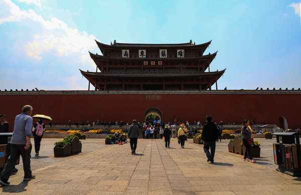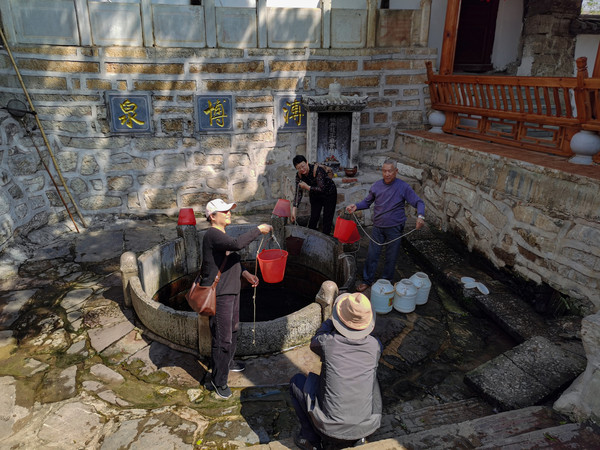 下午去建水古城逛了逛,古城各地的都差不多,在西门处,有一名为{临安味道}的小饭店不错,据说这是当地人吃的一家店,草芽米线是特色,有十元、十五、二十元三种,我要了一份十五的一份二十的驴肉米线,一样的大海碗,粉管够。老板都按十五收的。吃饱喝足,又去看了大阪井。当地居民都在此打水喝,不知道味道如何,有没有我们家乡的泉水好喝。