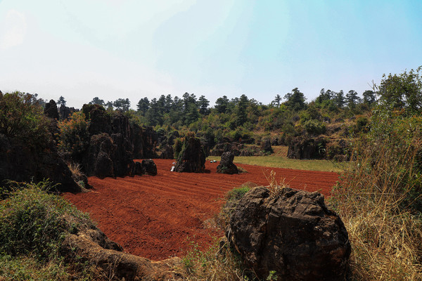 第33天3月30日 糯黑村离石林县城三十多公里,是一个用石头砌出来的村庄,村子不大,距今有600年历史,不光住房、米仓是石头砌的,就是牲畜栏也是石头砌的。回程的时候,发现路边的石林也非常好看,一点也不比景点里差。