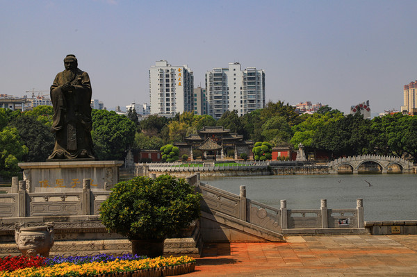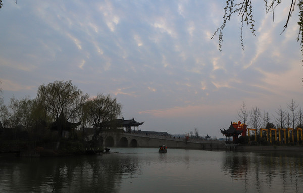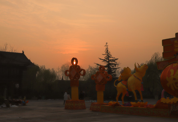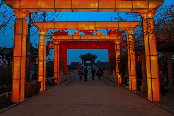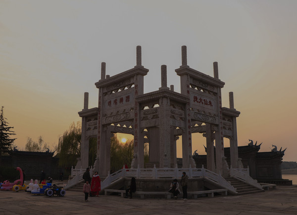 第一天 2021.2.26从济南出发我们没走高速,现在俩人都退休了,时间没限制了,走高速容易错过好多风景。经过八小时的车程,到了开封朱仙镇启封故园,朱仙镇是四大名镇之一。当时下午四点半了,天色不早了,本来想先看看情况住下后第二天早上再过来,保安介绍今天正好是正月十五, 平时五点半下班今天有灯展,延至八点半下班。我们就买票进去了,正常二十元一张,因为有灯展三十一张票。摄协会员免票,心里还挺高兴,能在镇上过元宵节,肯定比城市里热闹,结果让人有点失落,可能因为疫情的原因,进门后景色宜人,游人不多,灯也不多,当时以为天还没黑,不到点灯的时候,等我们逛到天已经完全黑了,才发现真没有几盏灯。只有几处地方挂着些折叠的灯笼,让游客猜灯谜,猜中了有点小礼品。开封的冬天也比较冷,晚上大概三四度,我们就住在了景区附近的滨之苑快捷酒店。