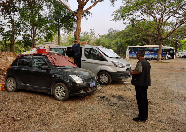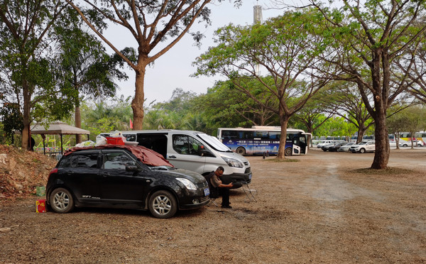 第十九天3月16日吃过早饭,到菜市场买好蔬菜水果,这边的大葱真贵啊,8块钱一斤。我们山东的富士苹果,小小的还7块钱一斤。在家里大的苹果才2.5一斤。本以为到了西双版纳,就能敞开吃热带水果了,结果是自己想多了,这边的水果一点也不便宜,开车先去了原始森林公园,门口一看需要爬山,我在普者黑青龙山上摔的那一跤,把膝盖伤到了。走平路都很疼,根本爬不了山。第二站是基诺山寨,门票152元。主要是歌舞表演加原始森林。我们要去中科院热带植物园和望天树景区,都有大片原始森林。所以基诺山寨也没进去。下午2点多钟到了中科院植物园,这个时间点进去已经太晚了,驻车在停车场,明天一早入园。
