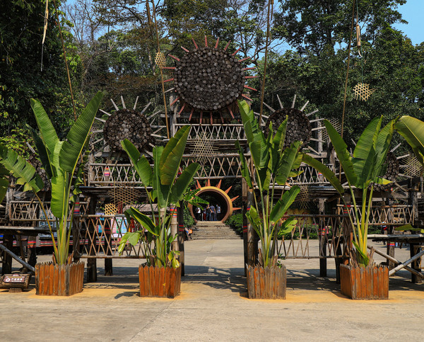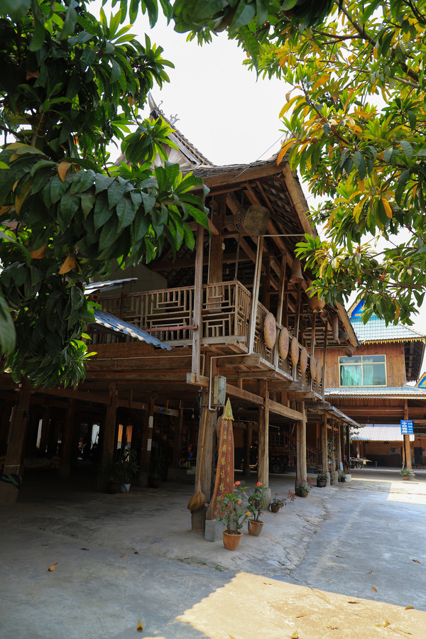 到了傣族园门票45元每人。电瓶车另收费。园内主要有几个傣族的寨子,都有当地人居住。傣族的房子都是一层是空的能停汽车,二楼是正常房间,楼梯都在屋子中央。每户人家基本上都成了民宿饭店。院内全是鲜花和多肉植物非常好看。