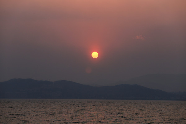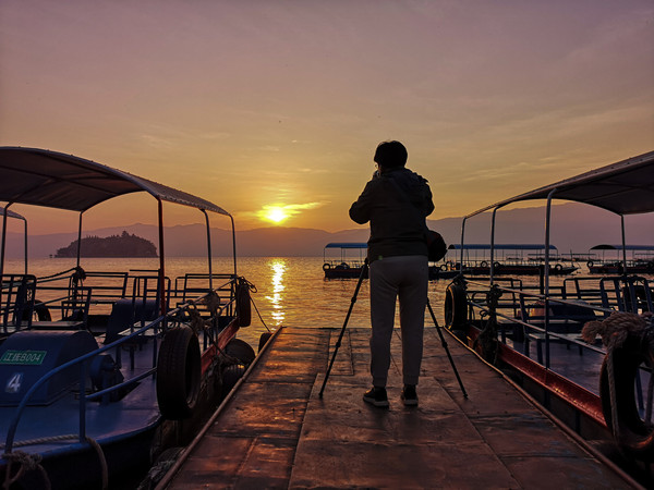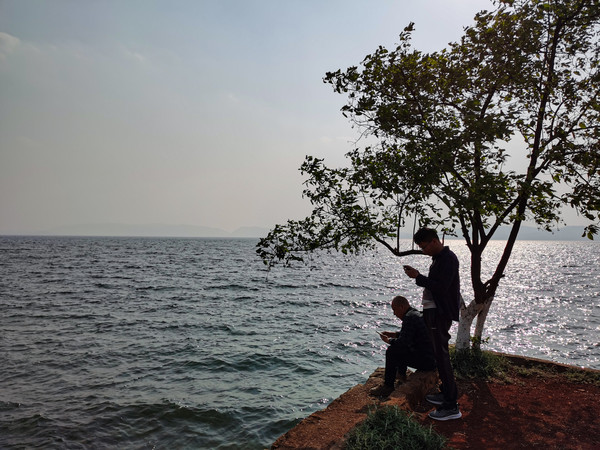 第28天3月25日从新平县出来,绕山路大概走了一个多小时,就从山区出来了,过玉溪市边到江川,路过石岩哨村,村子就在星云湖边。看过星云湖,边上有舟桥部队训练基地,有一侧不能靠近。离我们目的地还有9.8公里,东山村附近堵车了,大概堵了七十分钟后,车流开始缓慢移动,原来前面拐弯处,是收购香菜的市场,当地菜农的农用车都在排队进市场,交易完的出市场。造成了拥堵。二十分钟后到了抚仙湖边,沿环湖公路过小凹村,到了海镜村边观景台。当时下午三点多钟了,要等到晚上看日落。正好看到村民三三两两拎着蔬菜水果走来,寻着往前原来前面有一农贸集市,吃的用的什么都有。我们也买了些水果糕点,车停路边没法做饭,就在集市上喝了两碗米线,小老板知道我们是外地人,没吃过当地的豌豆粉,还送半份让我们尝尝。挺好吃的有点像我们山东的拌凉皮。今天的天空不是太透,快七点的时候太阳落山了,没等落到山后,就被云层完全给遮住了。由于停车位在路边,没有卫生间,趁着天没有完全黑透,我们开车去了西岸抚仙金滩停车场。