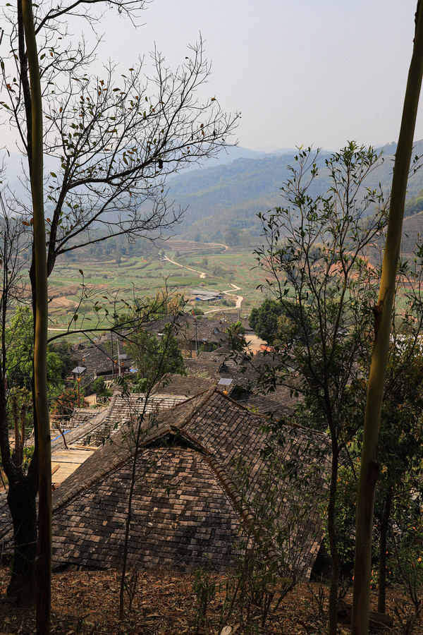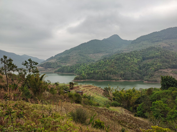 镇沅县城很干净,看着比景谷县小点,出了县城道路就开始颠簸,好像修什么交通枢纽,颠了几公里好了,没过十几公里,有开始了,不是小颠成了大坑小坑了,得有二十几公里长,原来是修云南墨临高速。好容易走过来,离目的地还有17.6公里处又修路,所有车辆禁止通行,要等六点之后才能通行。当时是下午四点,到六点天都要黑了,本来就阴天看着要下雨的样子,那时再跑山路就太危险了。问了当地人,往回返几公里有一条到各个寨子的小路,可以绕过修路的地段,赶紧调头,小路实在是太窄了,对向会车,都得有一方找个稍宽的地方避让。好在我们一路上让过四辆车后,总算有惊无险的回到323国道上。