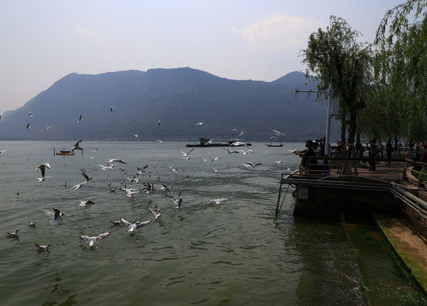 滇池周边没有可以过夜的停车场,找了很久,终于在海埂公园外找到一处。没水电,有简陋的卫生间,一晚上二十元。海埂公园就在对面,看红嘴鸥,走海埂大堤。天有点热还有点闷,人不是很舒服,觉得特疲劳。就没去西山,明天要找个酒店休整两天。